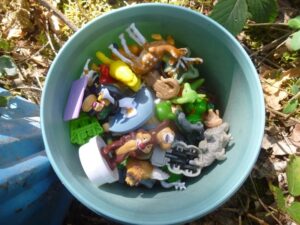 Un bon exemple de petits gadgets qui plaisent aux enfants reste les surprises trouvées dans les œufs d’une célèbre marque de chocolat. On trouve aussi dans certaines solderies des lots de petits objets pas chers du tout et qui conviennent parfaitement. Bref, un peu d’ imagination et les récipients peuvent se garnir de choses intéressantes …
